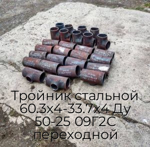 - Тройник стальной 60.3х4-33.7х4 Ду 50-25 09Г2С переходной N50834