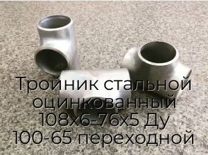 - Тройник стальной оцинкованный 108х6-76х5 Ду 100-65 переходной N51232