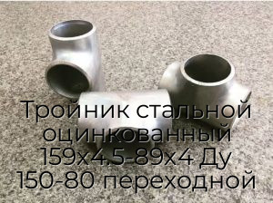 - Тройник стальной оцинкованный 159х4.5-89х4 Ду 150-80 переходной N51250