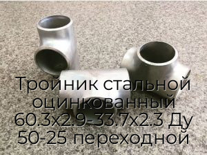 - Тройник стальной оцинкованный 60.3х2.9-33.7х2.3 Ду 50-25 переходной N51334