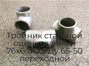 Тройник стальной оцинкованный 76х6-57х5 Ду 65-50 переходной - продажа оптом и в розницу по цене от 971 руб. в Москве. Доставка по Москве и всей России