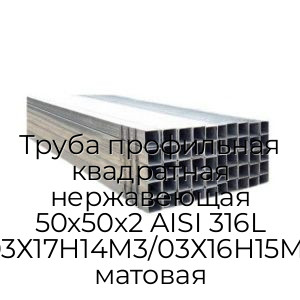 - Труба профильная квадратная нержавеющая 50х50х2 AISI 316L (03Х17Н14М3/03Х16Н15М3) матовая N3625