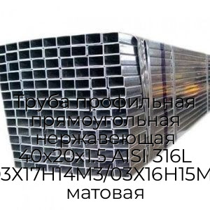 Труба профильная прямоугольная нержавеющая 40х20х1.5 AISI 316L (03Х17Н14М3/03Х16Н15М3) матовая - продажа оптом и в розницу по цене от 401136 руб. в Москве. Доставка по Москве и всей России