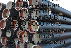 Труба чугунная оцинкованная напорная раструбная RJ/ВРС Ду80 6000 мм с ЦПП б/к с нар. лак. покрытием Свободный Сокол - продажа оптом и в розницу по цене от 11370 руб. в Москве. Доставка по Москве и всей России