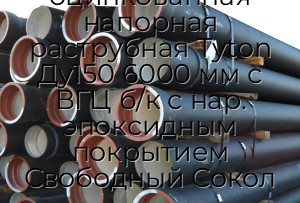 - Труба чугунная оцинкованная напорная раструбная Tyton Ду150 6000 мм с ВГЦ б/к с нар. эпоксидным покрытием Свободный Сокол N103192