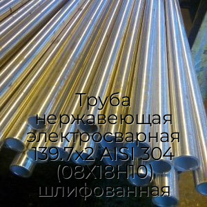 Труба нержавеющая электросварная AISI 304 08Х18Н10 — это полое внутри металлическое изделие, имеющее цилиндрическую форму и круглое сечение. Изготавливается в соответствии с ГОСТ 11068-81, ГОСТ 10704-91 из стальных листов, которые подвергаются гибке на специализированных станках с последующей автоматической сваркой шва. Отличается отполированной до блеска Шлифованной поверхностью. Имеет следующие стандартизированные размеры: фиксированная длина одной трубы - 6 метров, диаметр - 139.7 мм, толщина стенки - 2 мм.