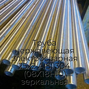 Труба нержавеющая электросварная AISI 304 08Х18Н10 — это полое внутри металлическое изделие, имеющее цилиндрическую форму и круглое сечение. Изготавливается в соответствии с ГОСТ 11068-81, ГОСТ 10704-91 из стальных листов, которые подвергаются гибке на специализированных станках с последующей автоматической сваркой шва. Отличается отполированной до блеска Зеркальной поверхностью. Имеет следующие стандартизированные размеры: фиксированная длина одной трубы - 6 метров, диаметр - 25 мм, толщина стенки - 2 мм.