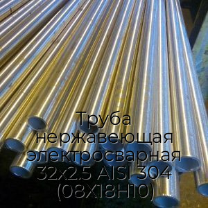 Труба нержавеющая электросварная AISI 304 08Х18Н10 — это полое внутри металлическое изделие, имеющее цилиндрическую форму и круглое сечение. Изготавливается в соответствии с ГОСТ 11068-81, ГОСТ 10704-91 из стальных листов, которые подвергаются гибке на специализированных станках с последующей автоматической сваркой шва. Отличается отполированной до блеска Без покрытия поверхностью. Имеет следующие стандартизированные размеры: фиксированная длина одной трубы - 6 метров, диаметр - 32 мм, толщина стенки - 2,5 мм.