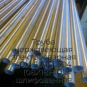 Труба нержавеющая электросварная AISI 304 08Х18Н10 — это полое внутри металлическое изделие, имеющее цилиндрическую форму и круглое сечение. Изготавливается в соответствии с ГОСТ 11068-81, ГОСТ 10704-91 из стальных листов, которые подвергаются гибке на специализированных станках с последующей автоматической сваркой шва. Отличается отполированной до блеска Шлифованной поверхностью. Имеет следующие стандартизированные размеры: фиксированная длина одной трубы - 6 метров, диаметр - 40 мм, толщина стенки - 1,5 мм.