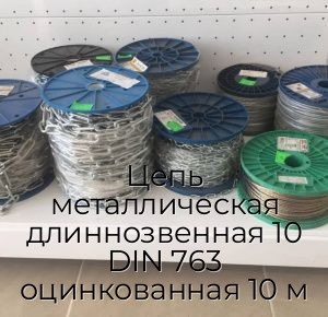 - Цепь металлическая длиннозвенная 10 DIN 763 оцинкованная 10 м N50511