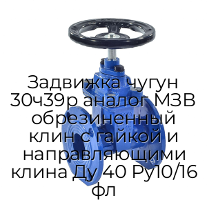 - Задвижка чугун 30ч39р аналог МЗВ обрезиненный клин с гайкой и направляющими клина Ду 40 Ру10/16 фл N94705