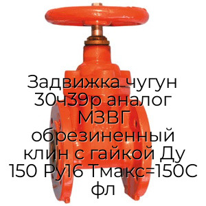- Задвижка чугун 30ч39р аналог МЗВГ обрезиненный клин c гайкой Ду 150 Ру16 Тмакс=150C фл N94762
