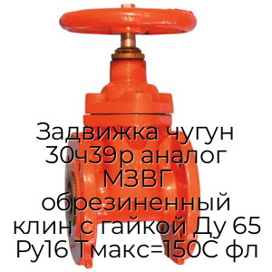 - Задвижка чугун 30ч39р аналог МЗВГ обрезиненный клин c гайкой Ду 65 Ру16 Тмакс=150C фл N94758