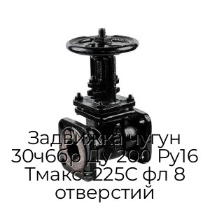 - Задвижка чугун 30ч6бр Ду 200 Ру16 Тмакс=225C фл 8 отверстий N94687