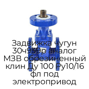 - Задвижка чугун 30ч939р аналог МЗВ обрезиненный клин Ду 100 Ру10/16 фл под электропривод N94700