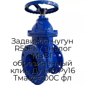 - Задвижка чугун R55FLY аналог МЗВГ обрезиненный клин Ду 100 Ру16 Тмакс=100C фл N94722