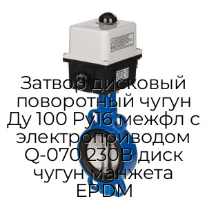 - Затвор дисковый поворотный чугун Ду 100 Ру16 межфл с электроприводом Q-070 230В диск чугун манжета EPDM N94916