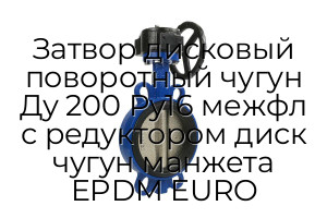 - Затвор дисковый поворотный чугун Ду 200 Ру16 межфл с редуктором диск чугун манжета EPDM EURO N94882