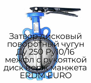 - Затвор дисковый поворотный чугун Ду 250 Ру10/16 межфл с рукояткой диск нерж манжета EPDM EURO N94874