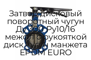 - Затвор дисковый поворотный чугун Ду 300 Ру10/16 межфл с рукояткой диск чугун манжета EPDM EURO N94910