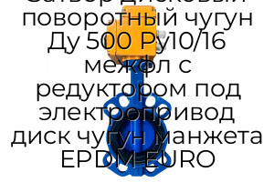 - Затвор дисковый поворотный чугун Ду 500 Ру10/16 межфл с редуктором под электропривод диск чугун манжета EPDM EURO N94922