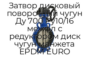 - Затвор дисковый поворотный чугун Ду 700 Ру10/16 межфл с редуктором диск чугун манжета EPDM EURO N94890