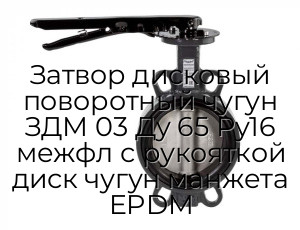 - Затвор дисковый поворотный чугун ЗДМ 03 Ду 65 Ру16 межфл с рукояткой диск чугун манжета EPDM N94957