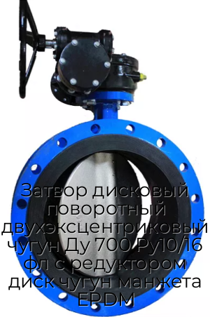 Затвор дисковый поворотный двухэксцентриковый чугун Ду 700 Ру10/16 фл с редуктором диск чугун манжета EPDM обеспечивает эффективное управление потоками в трубопроводных системах, упрощает обслуживание инженерных сетей и подходит для применения в ответственных технических и промышленных проектах.